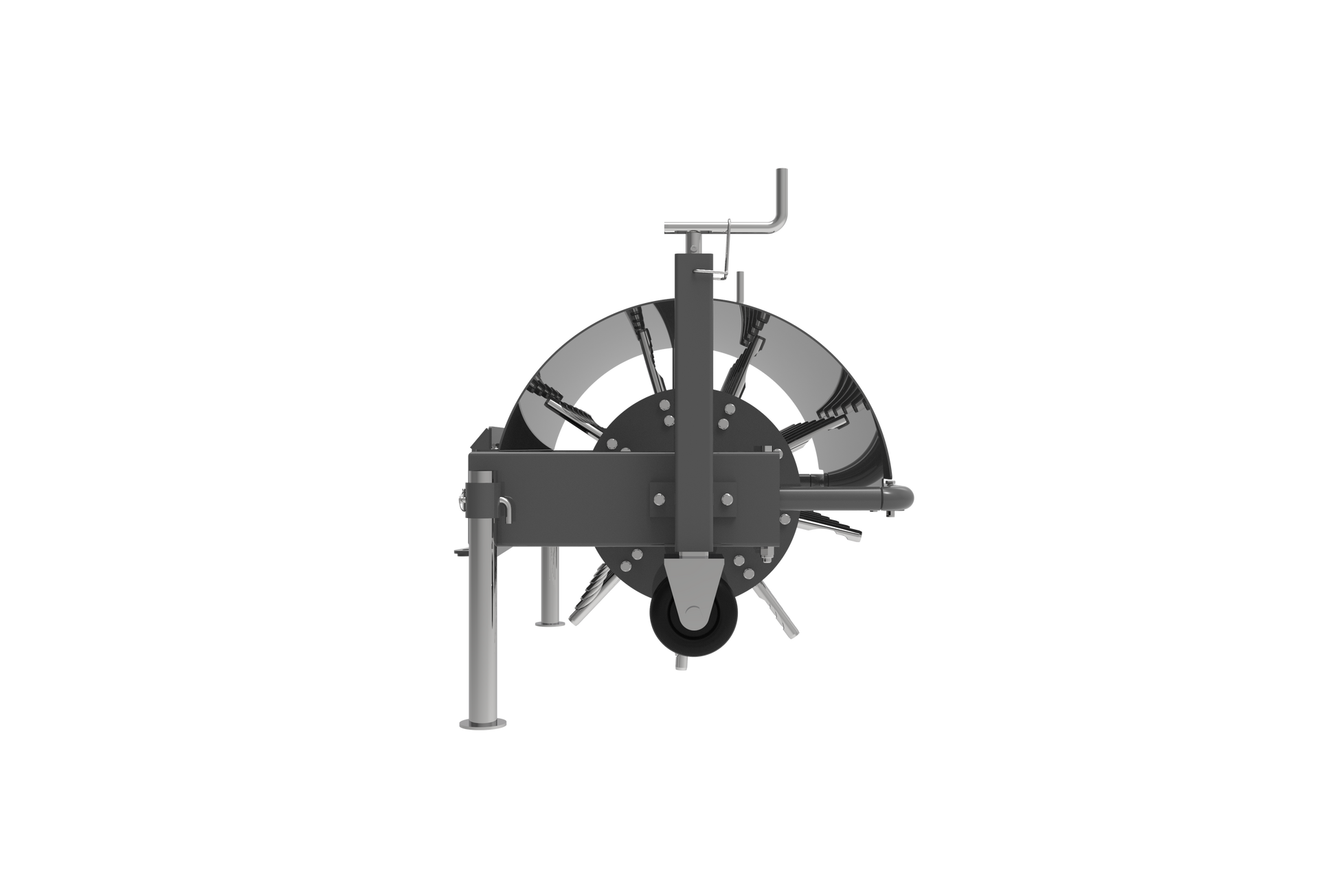 The core aerator penetrates the ground pulling plugs of grass and soil from the ground, leaving the plugs behind. The holes created enable air, fertilizer, and water to effectively reach the lawn roots in heavy clay soils. Core aerator penetration depth is easily controlled using the two guide wheels, providing consistent results. The core aerator is also equipped with mechanical support legs which lift the blades off the ground for storage. It is the ideal attachment for gardens and sports fields maintenance ,thanks to their traction system, don’t damage the turf.