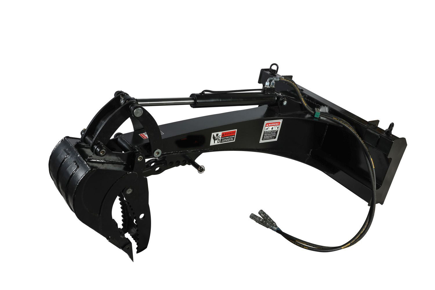Skid steer Backhoe with Universal quick attach plate. Standard with Thumb. Bucket Width 9", 12", 18" and 24" available on option.